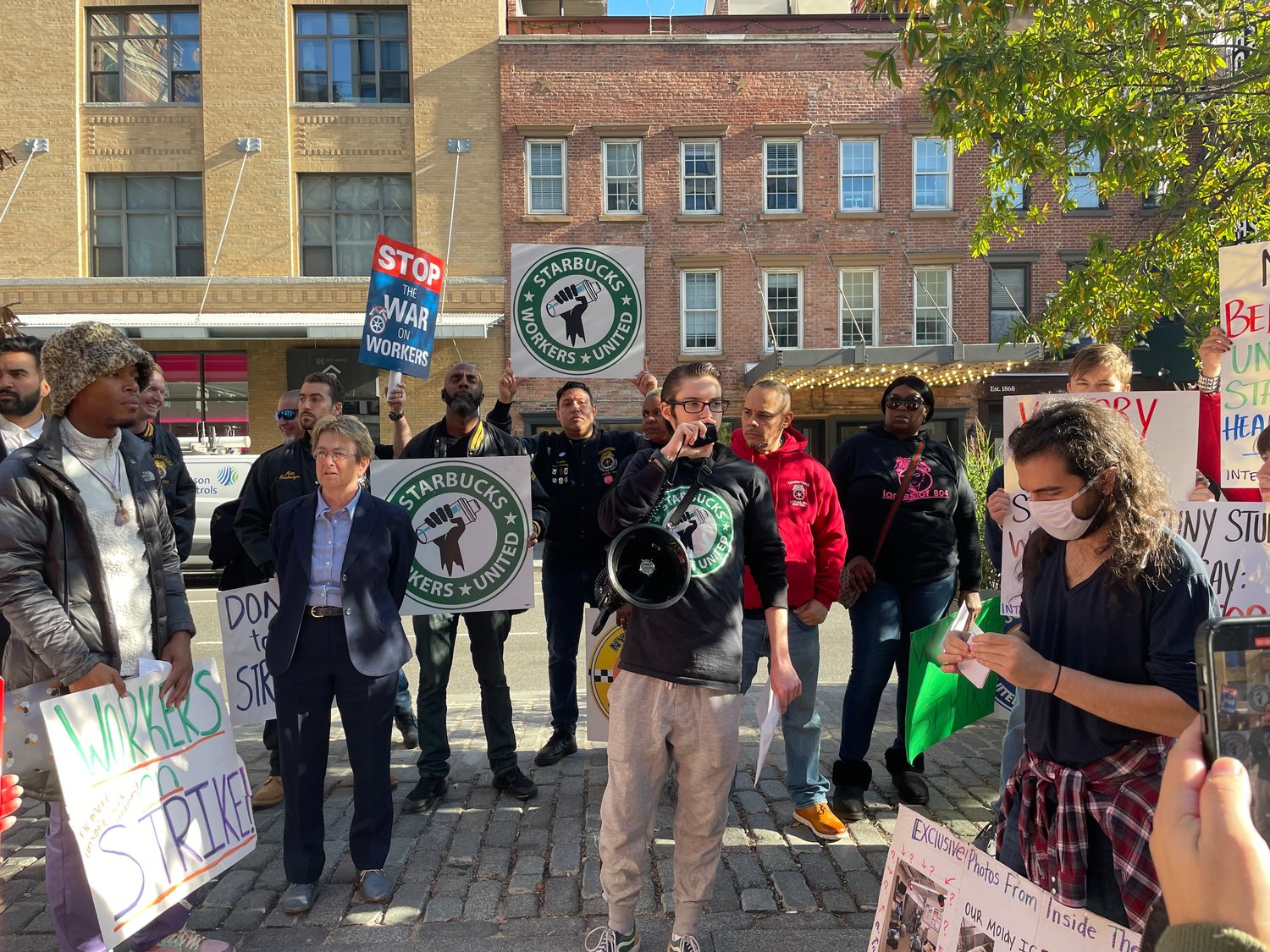 Los trabajadores, organizados con Starbucks Workers United, comenzaron a hacer piquetes frente a la tostaduría en Meatpacking District a posteriori de encontrar insectos en sus salas de alivio y moho en una máquina de hielo.